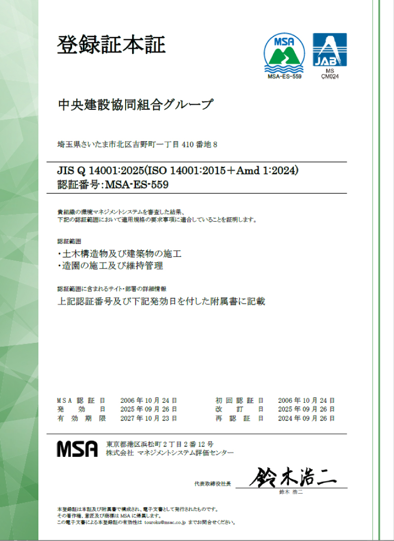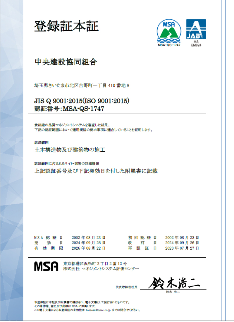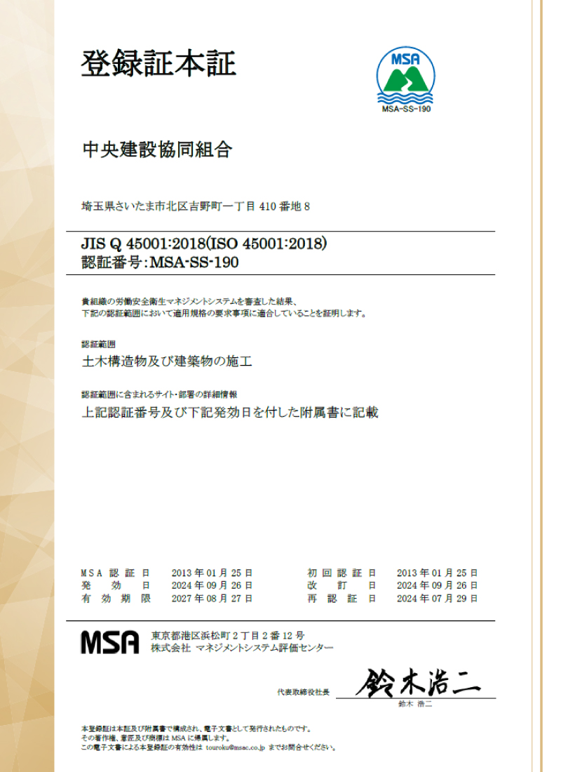埼玉県さいたま市にある官公需適格組合、中央建設協同組合。中央建設協同組合は、総合建設業として、建設関連工事全般、土木工事、管工事等幅広い建築工事を公共工事、民間工事問わず実施しています。